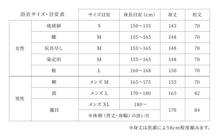 浴衣 ¥14,300~¥16,500 ※デザインにより価格が異なります。
