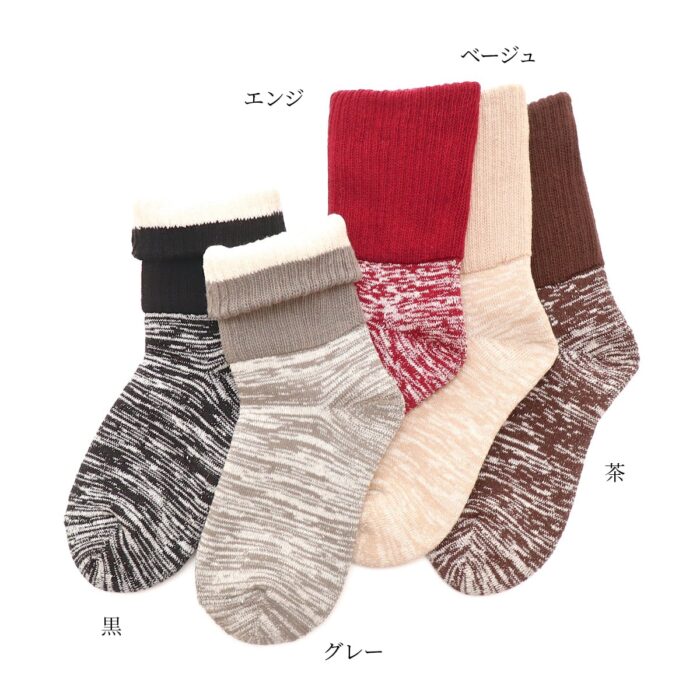 綿と絹糸で織り上げた非常に暖かく柔らかい履き心地のソックス。お部屋でのくつろぎの時間や就寝時におすすめ致します。