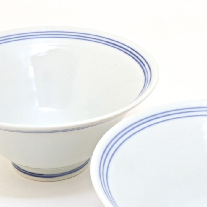 ・白磁に呉須が映えるデザインで側面の曲線のフォルムが特徴的です。飯碗以外にお料理の器としてもおすすめいたします。