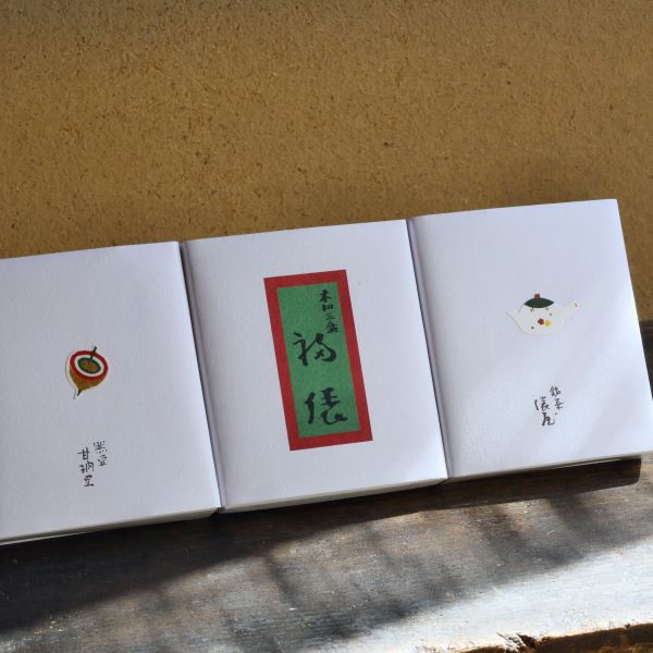 和三盆「福俵」、「黒豆」、「銘茶俵屋(ティーバッグ)」の3種類を味わっていただけます。