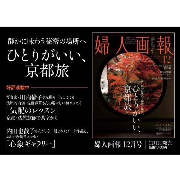 「気配」のレッスン、連載第3回「変わりゆくもの」(文=俵屋・佐藤春華)が婦人画報1月号に掲載されています。