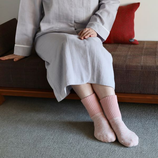 シルクならではの保温性のよい生地で、くつろぎの時やご就寝時などに足元を冷えから守ってくれます。