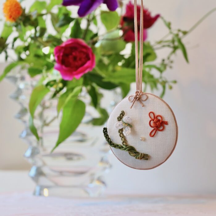 日本の組紐の技法とイタリアビーズの技法を融合させて、愛らしいシークレットガーデンを作りました。