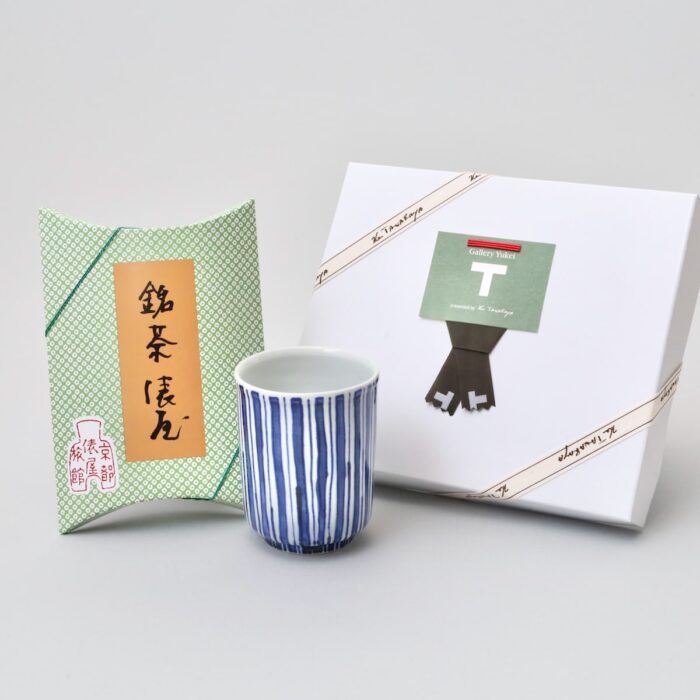 宮本茂利作の湯呑と、俵屋で供される伊勢のかぶせ茶「銘茶俵屋」のティーバッグとのセットです。