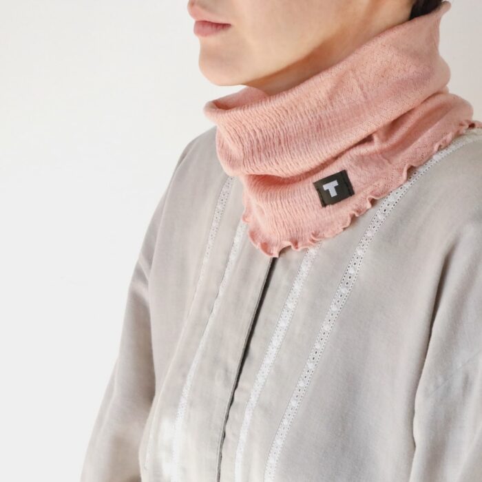 着けていることを忘れるほどに軽く、シルクならではの肌触りが大変気持ちいいボディウォーマーです。首元やお腹などマルチに活躍してくれます。