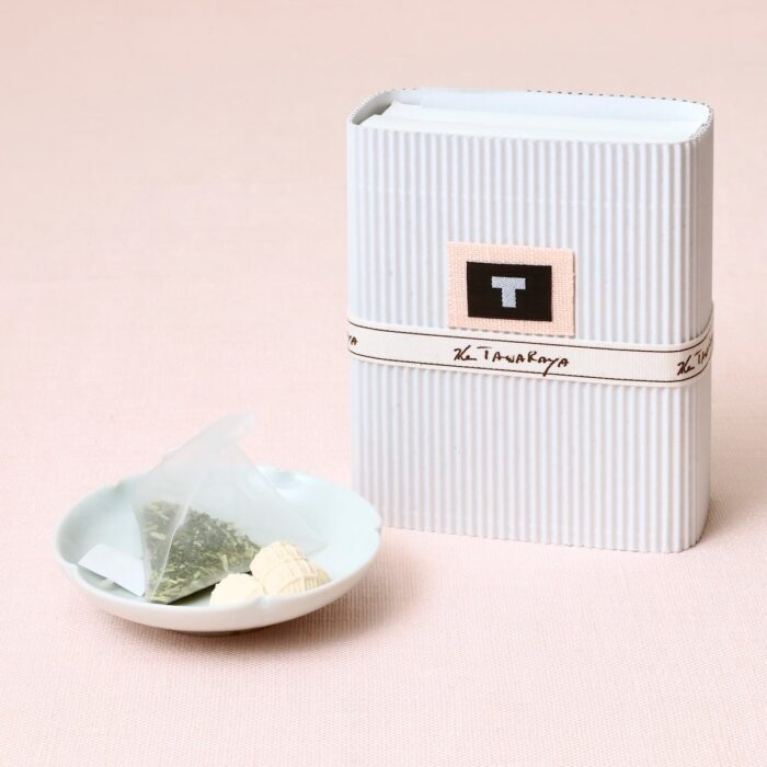 俵屋で使用している煎茶が気軽に味わえるティーバッグとお干菓子のセットです。