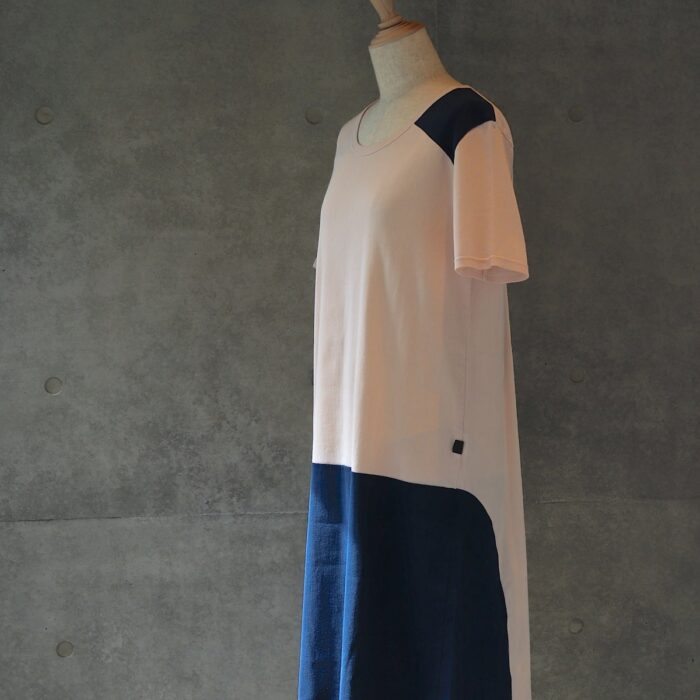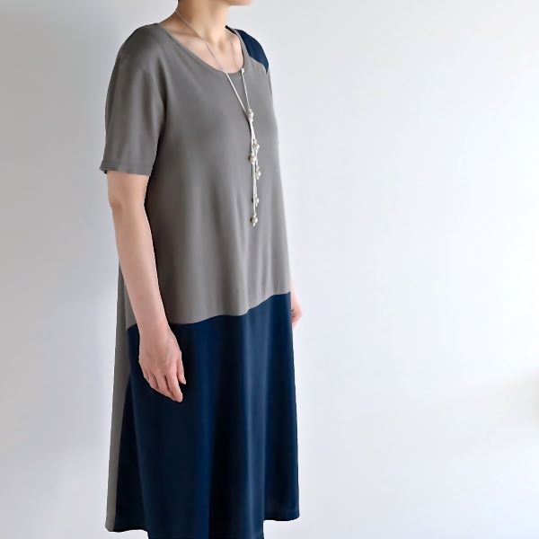 膝下丈のワンピース。お部屋着にも外出着にも。