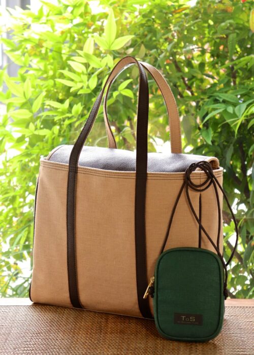 ・素材 表生地:オリジナルリネン(麻100%)、裏生地:ナイロン、肩紐:綿(ワックス加工)