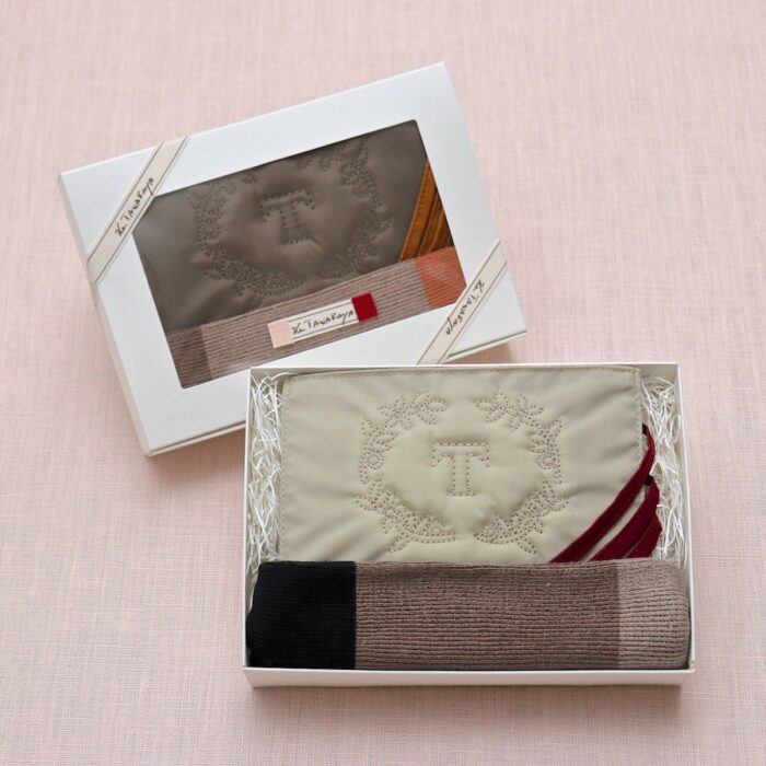 ウォッシュタオル(34×34cm)×1、ソープケース(石鹸1個入)×1、絵足袋L(26~29cm)×1