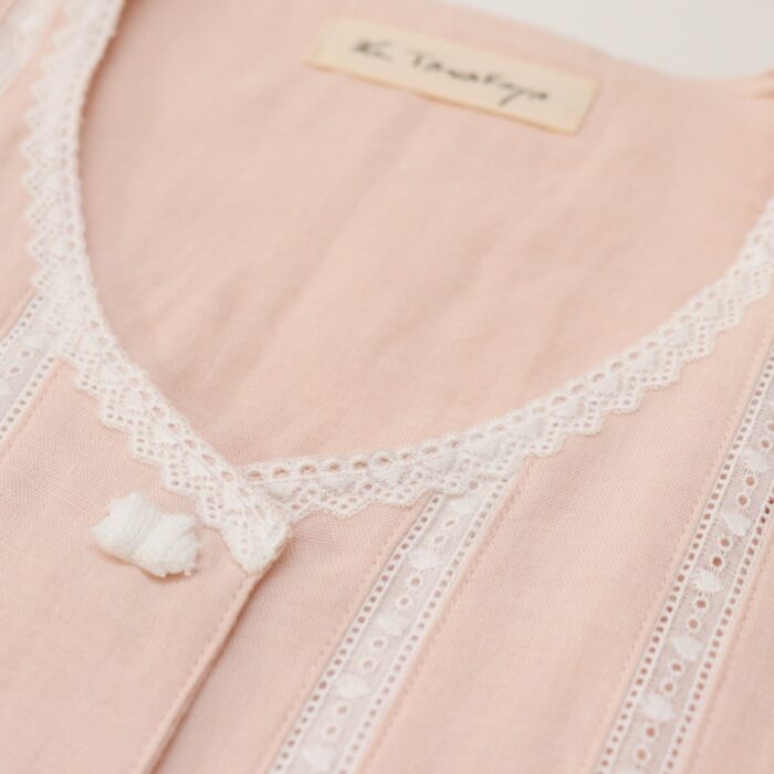 胸元にレースをあしらったナイティ。オリジナル二重ガーゼの軽く柔らかい生地は、肌触りが抜群です。