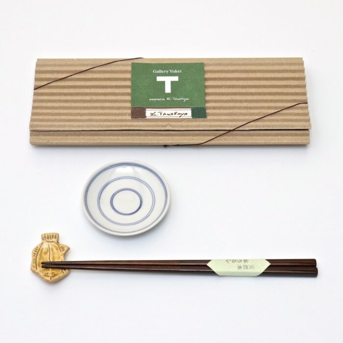 塗箸・黒×1、箸置き・カレイ×1、柏木円・白磁呉須絵豆皿(径7.5×高さ1.5cm)×1
