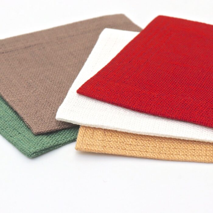 5本のステッチで縫い合わせたオリジナルリネンのコースター。季節や器に合わせ、テーブルコーディネートで色を使い分けるのも楽しみになります。