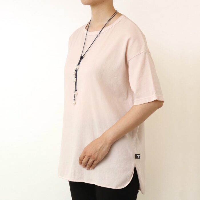 ワイドなシルエットで後ろ身頃を少し長めにとったゆったりとしたTシャツです。