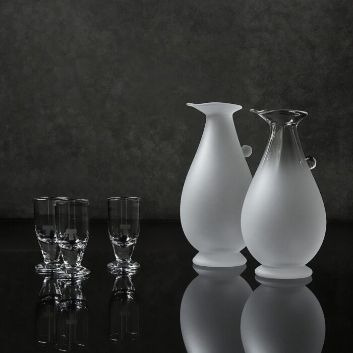 涼やかなガラス製の酒器とショットグラスで、冷酒を一献傾ける。