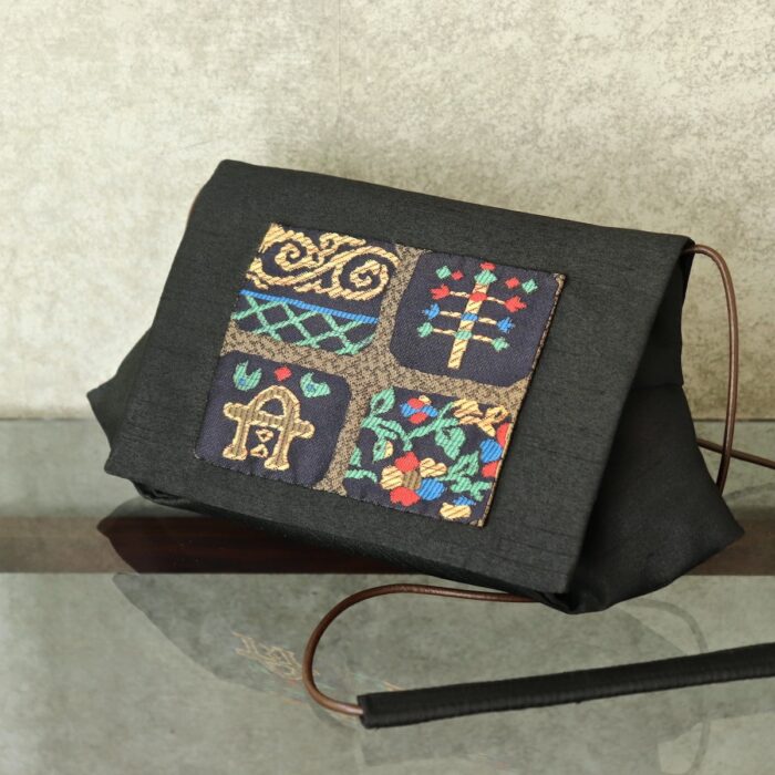 素材 表生地:ポリエステルシャンタン、正絹生地、裏生地:ナイロン、肩紐:革(ワックス加工)